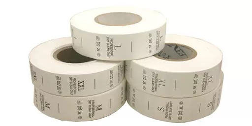 Đây là loại tem rất phổ biến trong ngành may mặc – quà tặng – thời trang cao cấp, và có nhiều cách gọi khác nhau nên mình cần phân biệt rõ. Nhãn in ruy băng (còn gọi là tem nhãn giấy mềm, tem lụa in, ribbon label) là loại nhãn vải giống như giấy vải, mềm mịn như dải ruy băng, dùng để in thông tin thương hiệu, hướng dẫn sử dụng, thành phần vải, thông tin size, hoặc logo gắn trên sản phẩm quần áo may mặc, giày da, túi sách, sản phẩm nội thất.