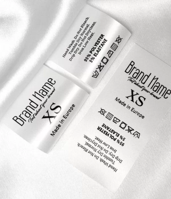 Mặt trước của nhãn bóng loáng, cho cảm giác sang trọng, trong khi mặt sau thường mờ nhám giúp dễ may vào sản phẩm.