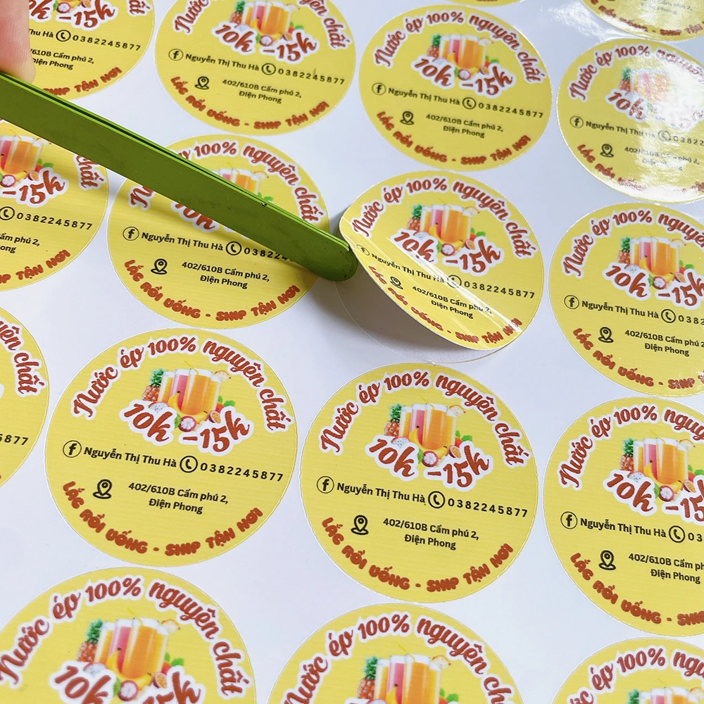 Decal nhựa (PVC, PP, PET): Chống nước, bền màu, dán chai lọ